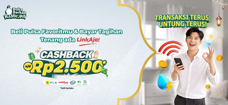 -Cashback Saldo Bonus s.d. Rp1,500 untuk pembayaran tagihan (PLN, Indihome, PDAM, BPJS) di LinkAja.