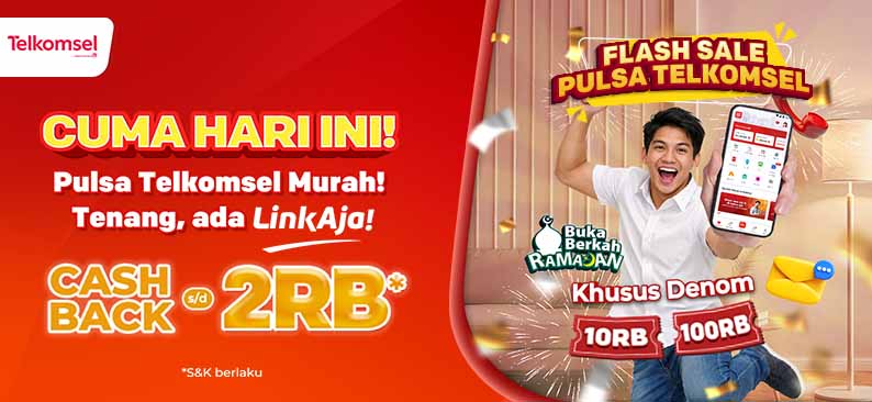 1.Promo berupa Cashback Saldo Bonus LinkAja Rp2,000 untuk setiap transaksi Pulsa Telkomsel 100.000 dan Rp1,500 untuk Pulsa Telkomsel 10,000.